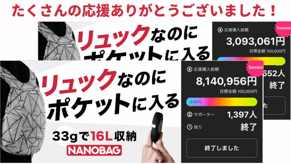 Makuake・アンコールプロジェクトで大好評だった、NANOBAG 「DAYPACK」。